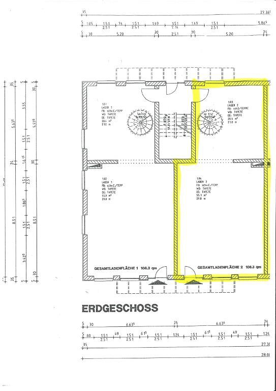 Die Geschäftsfläche im Erdgeschoss (84,7 m²) ist sehr geräumig, hat eine offene Stellfläche, ist hell/lichtdurchflutet durch bodenlange Fenster und hat höhere Decken.