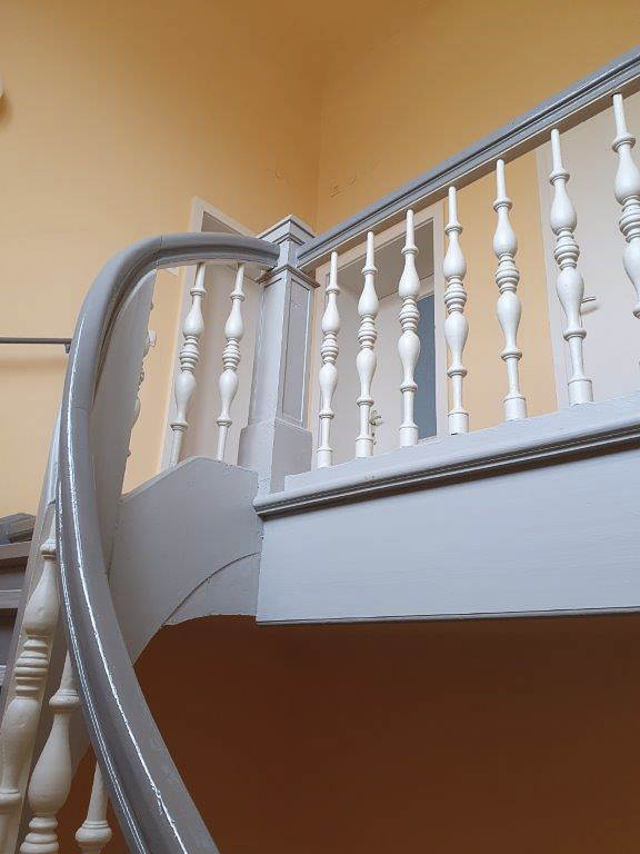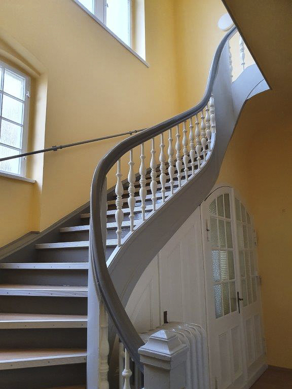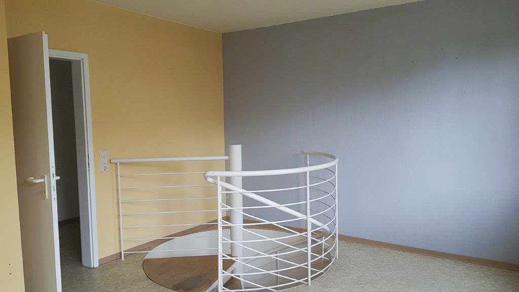 Der Aufenthaltsraum und der Sanitärraum im Obergeschoss (24,8 m²) sind über die Wendeltreppe und gleichzeitig separat über den Hintereingang erreichbar.