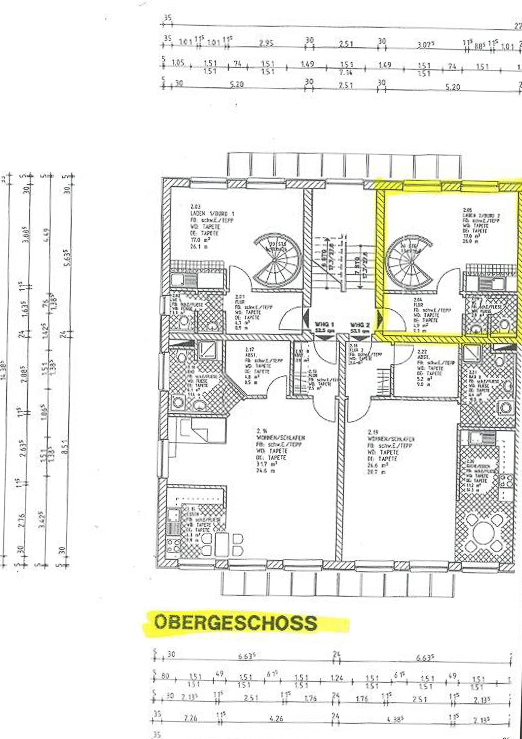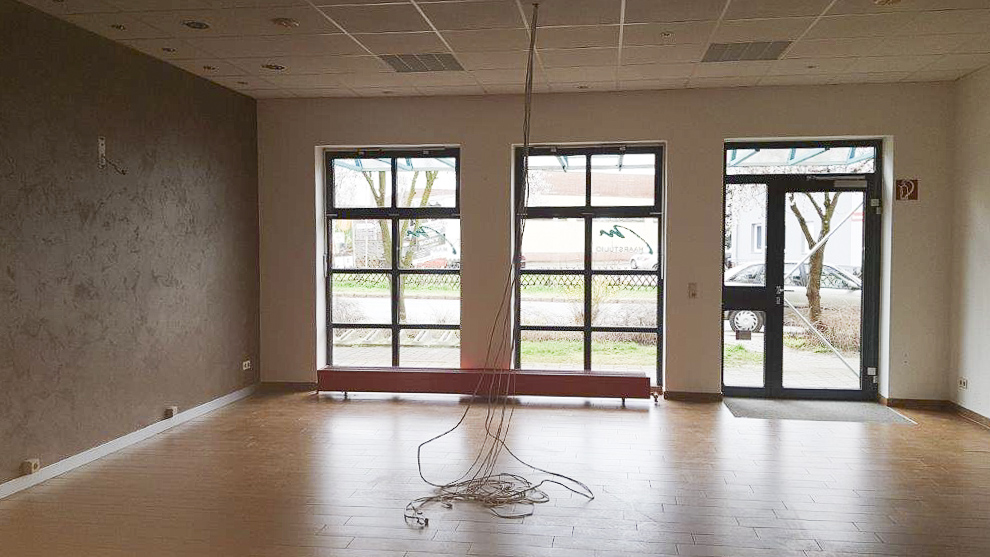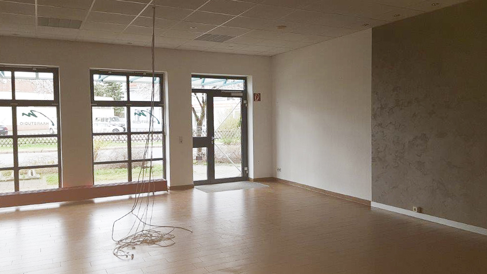 Die Geschäftsräume befinden sich neben der Sparkasse und umfassen eine Gesamtfläche von 109,50 m² verteilt auf Erdgeschoss und Obergeschoss.